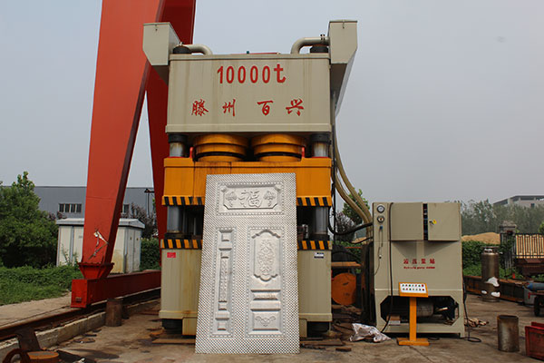 6000吨不锈钢门板压花机 防盗门室内门面压花机是滕州市香蕉视频在线免费机械有限公司生产的压块用于压制不锈钢门板花纹的一款机器。本机器根据客户需要压制的花型复杂程度和板子的材质厚度可以设计成6000吨8000吨门板压花机,1万吨以上防爆板门面压花机等。